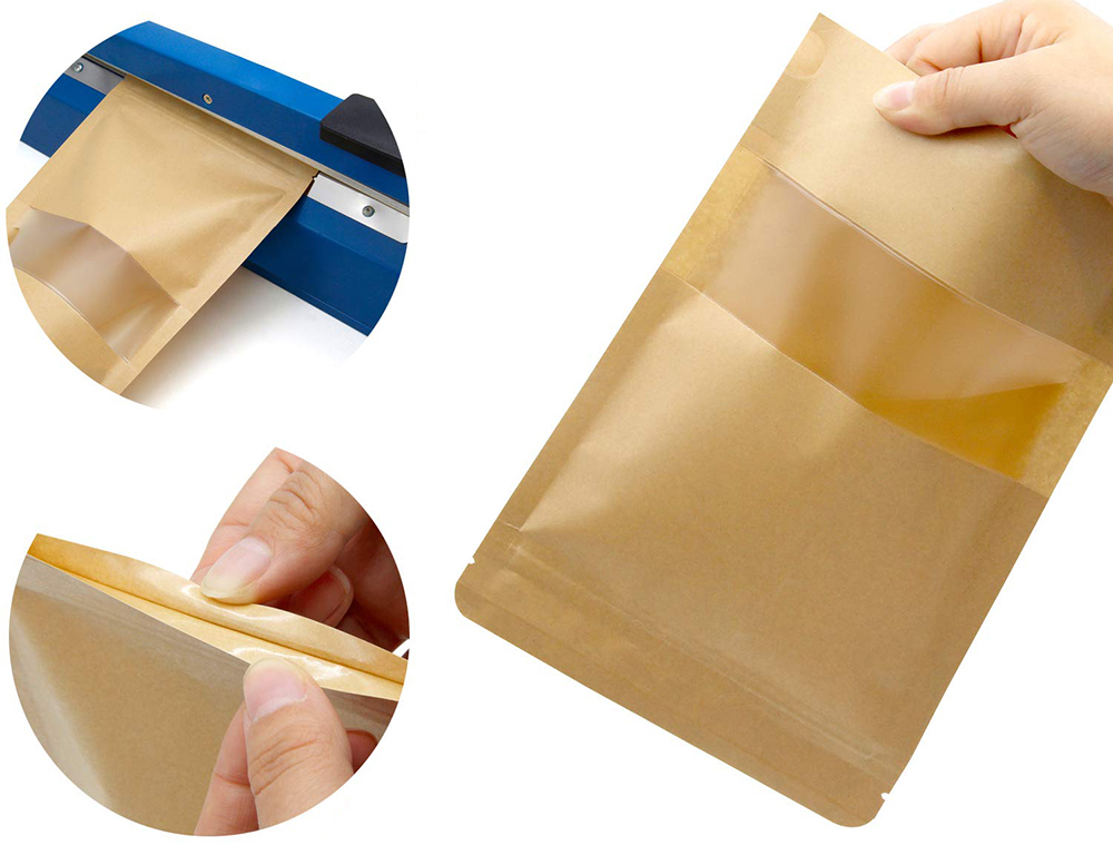 Reusable Zip Lock Stand Up Kraft Paper Bag With Matte Transparent Window 10pcs Livingbasics